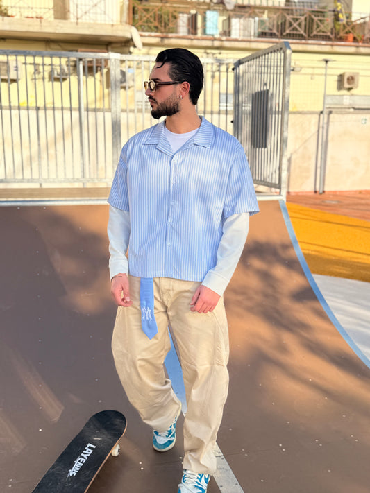 CAMICIA A RIGHE CROP CELESTE