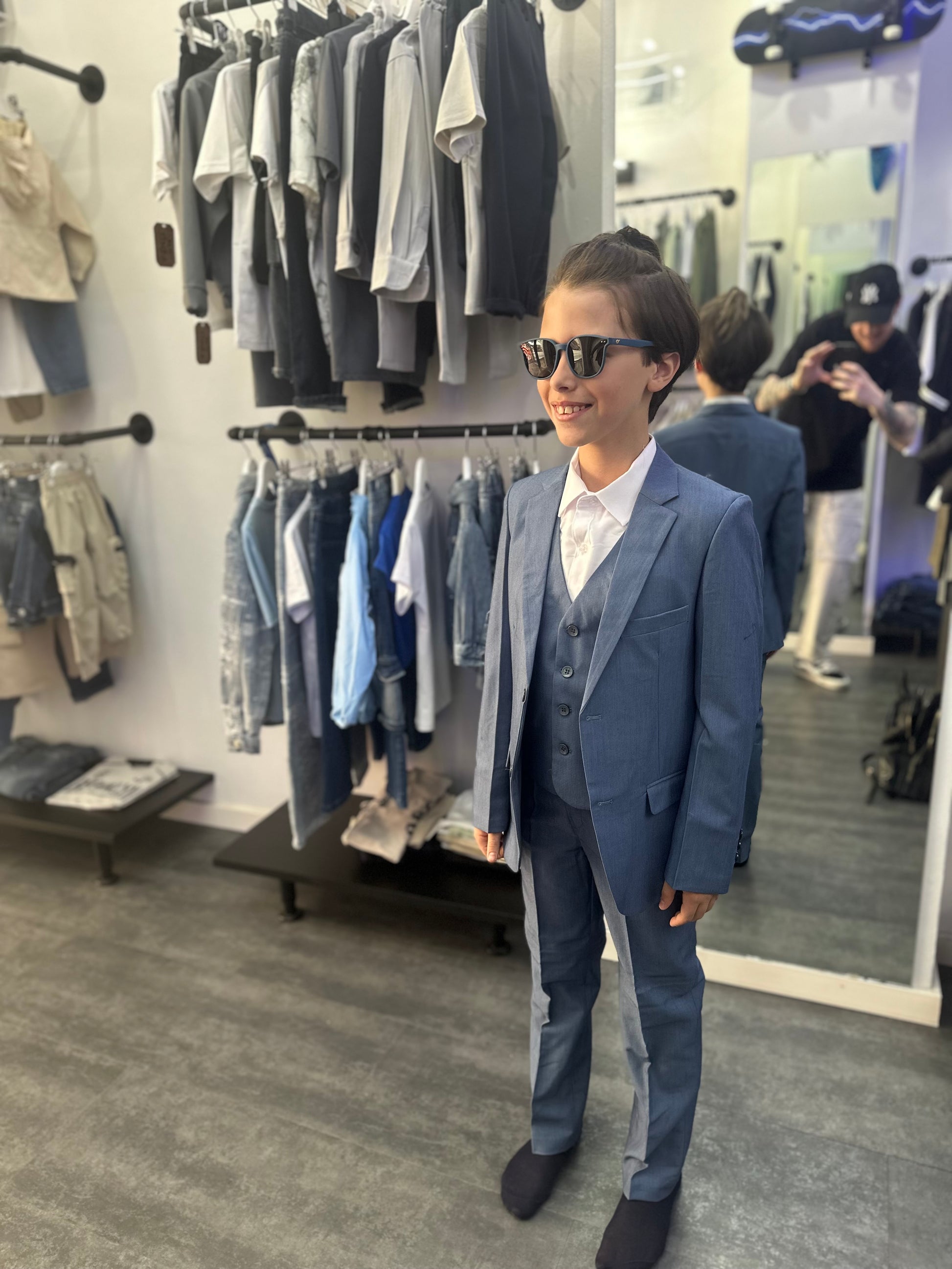 Completo elegante composto da pantalone, camicia, papillon, panciotto e giacca, ideale per cerimonie e occasioni speciali. Realizzato con tessuti di alta qualità, offre una vestibilità impeccabile e raffinata. Ogni dettaglio, dal taglio sartoriale alla scelta degli accessori, è pensato per un look