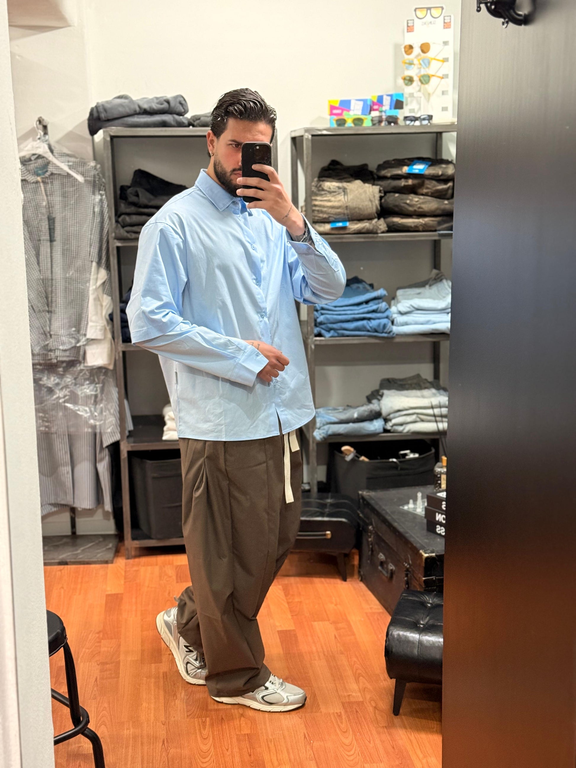 CAMICIA OVER DOUBLE SLEEVE CELESTE