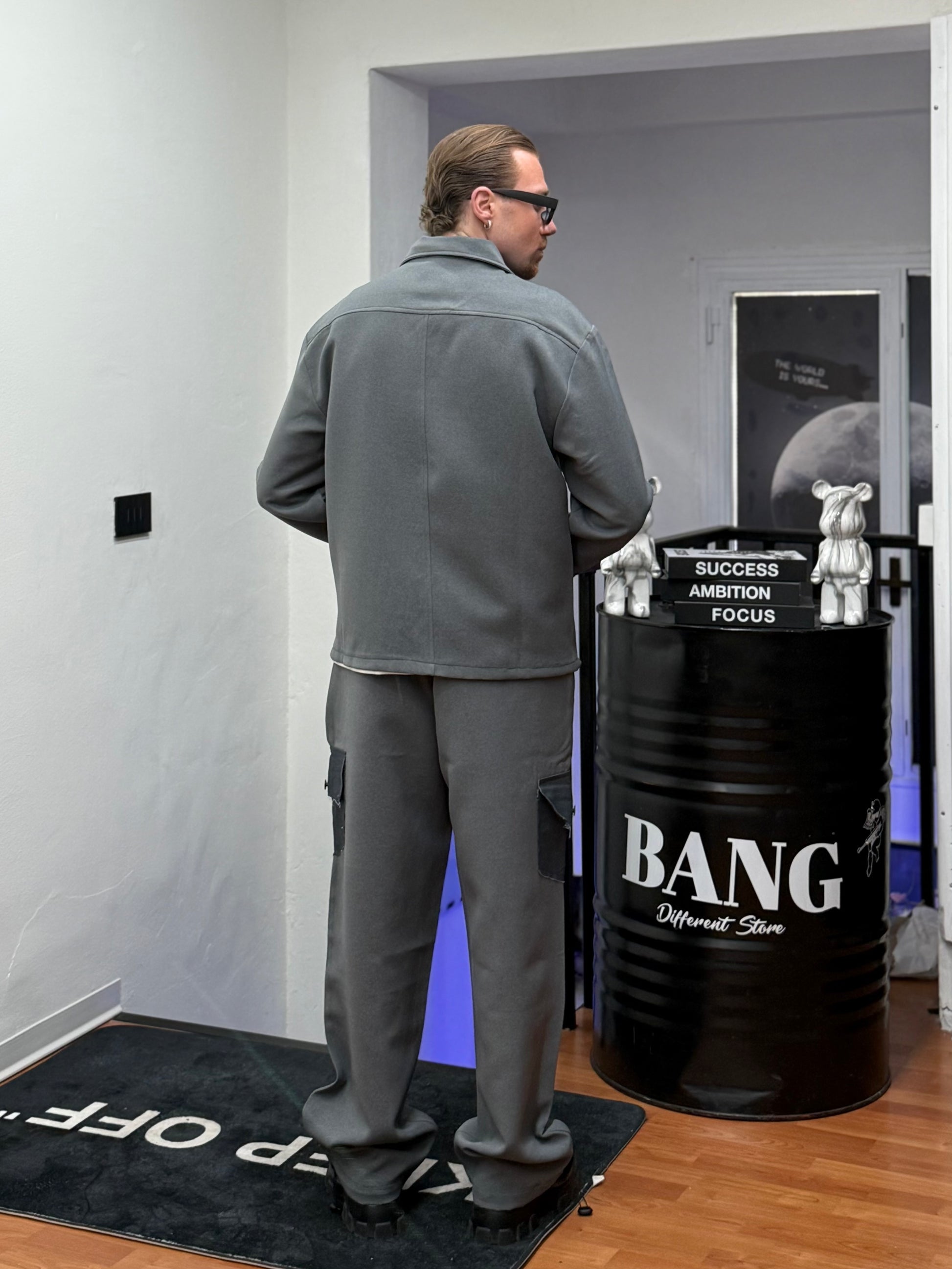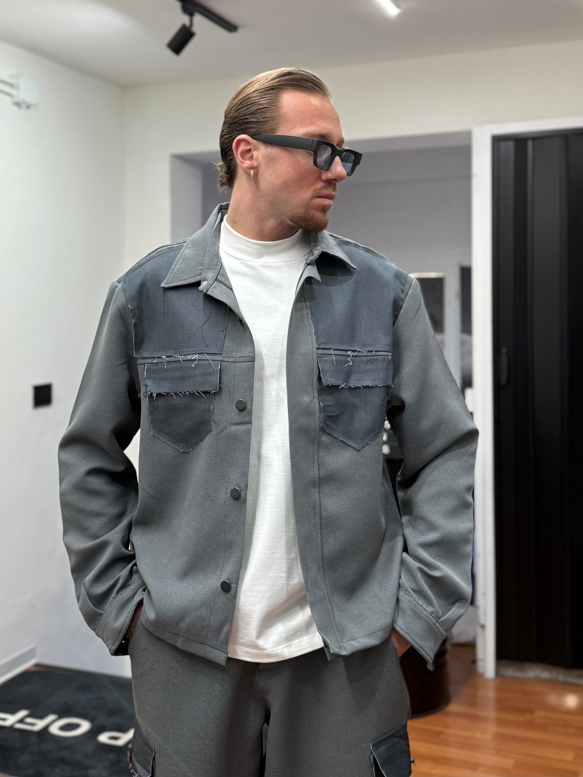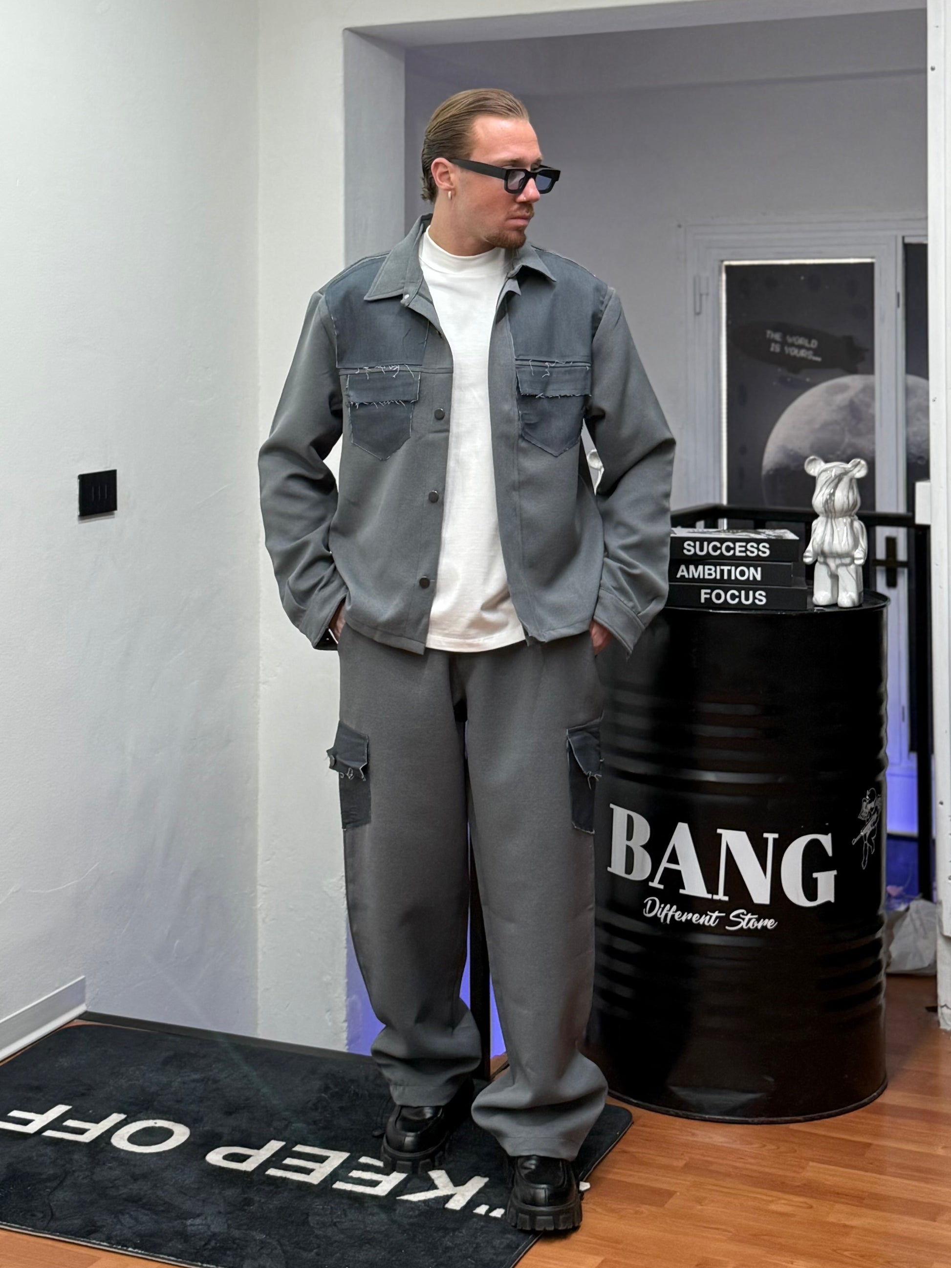 COORDINATO GRIGIO CON TASCHE IN JEANS TAGLIO VIVO