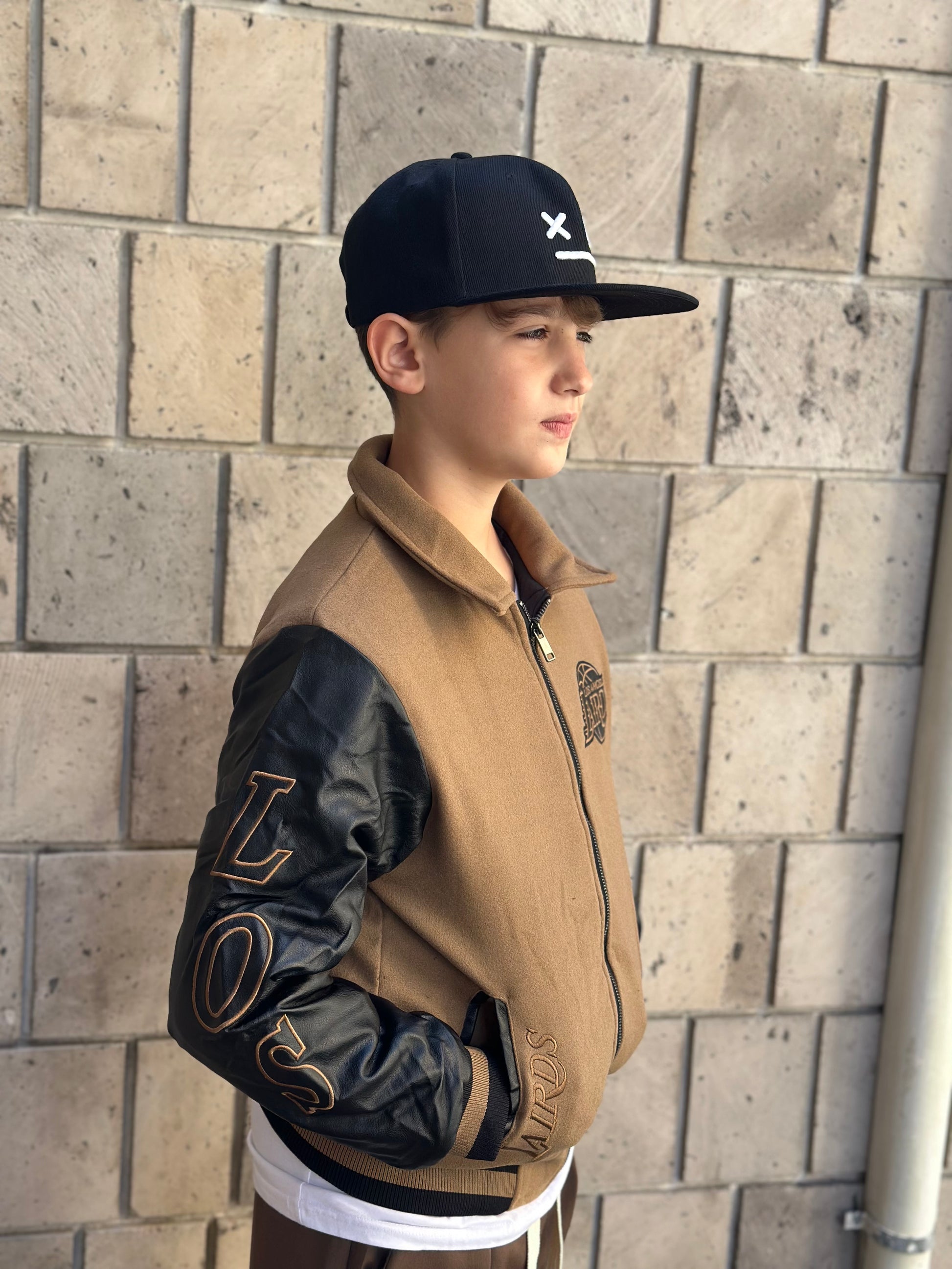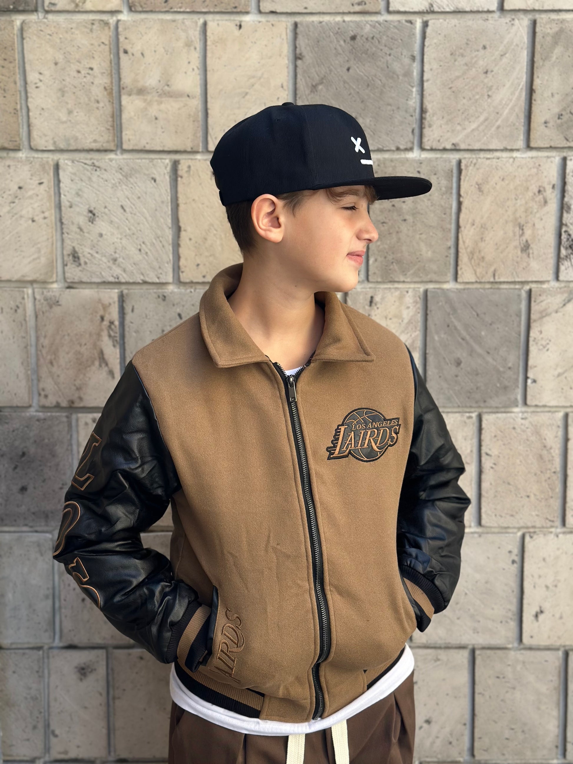 giubbotto collage mod. Lakers invernale trapuntato in camoscio e maniche in pelle con dettagli cuciti