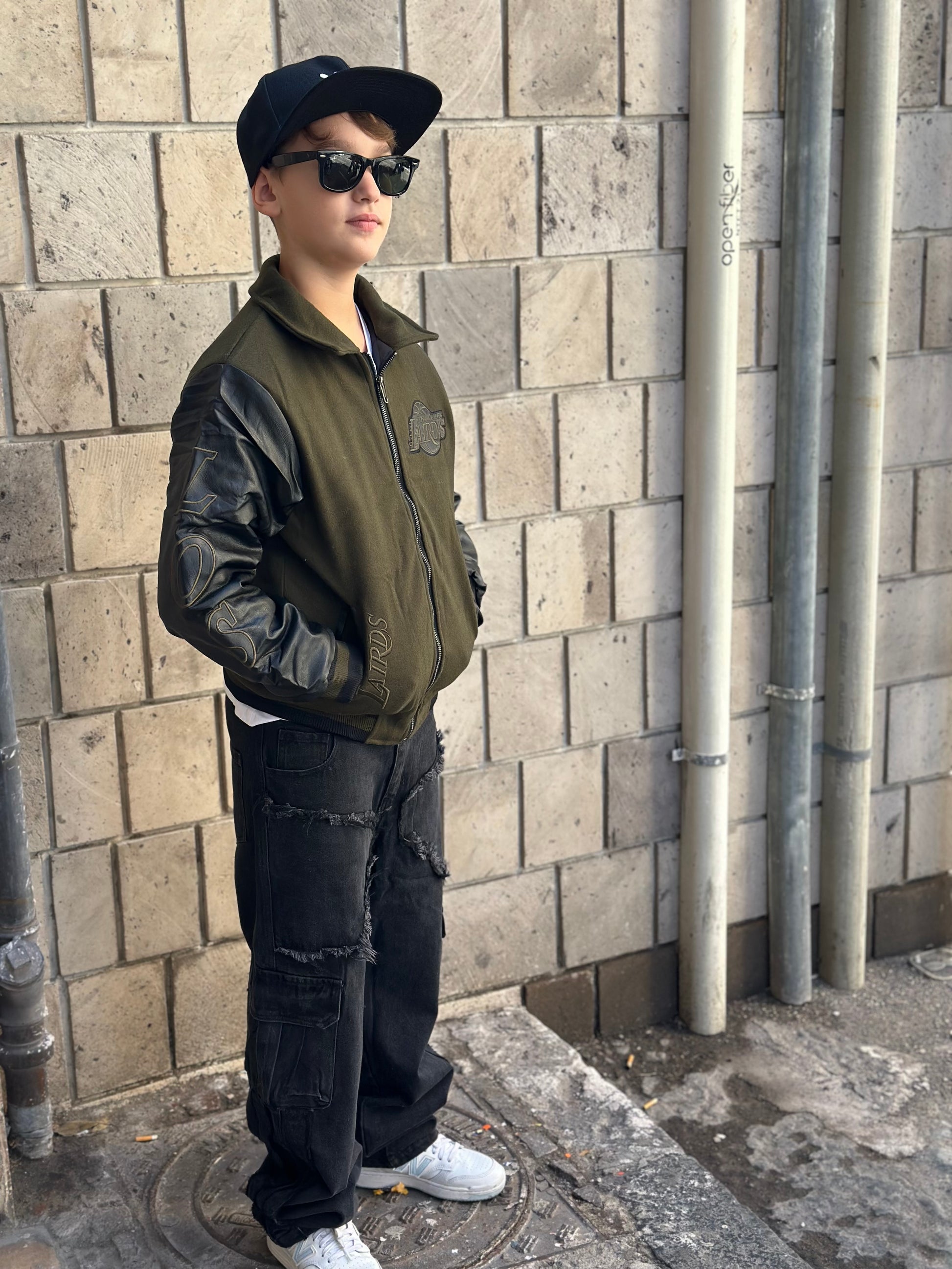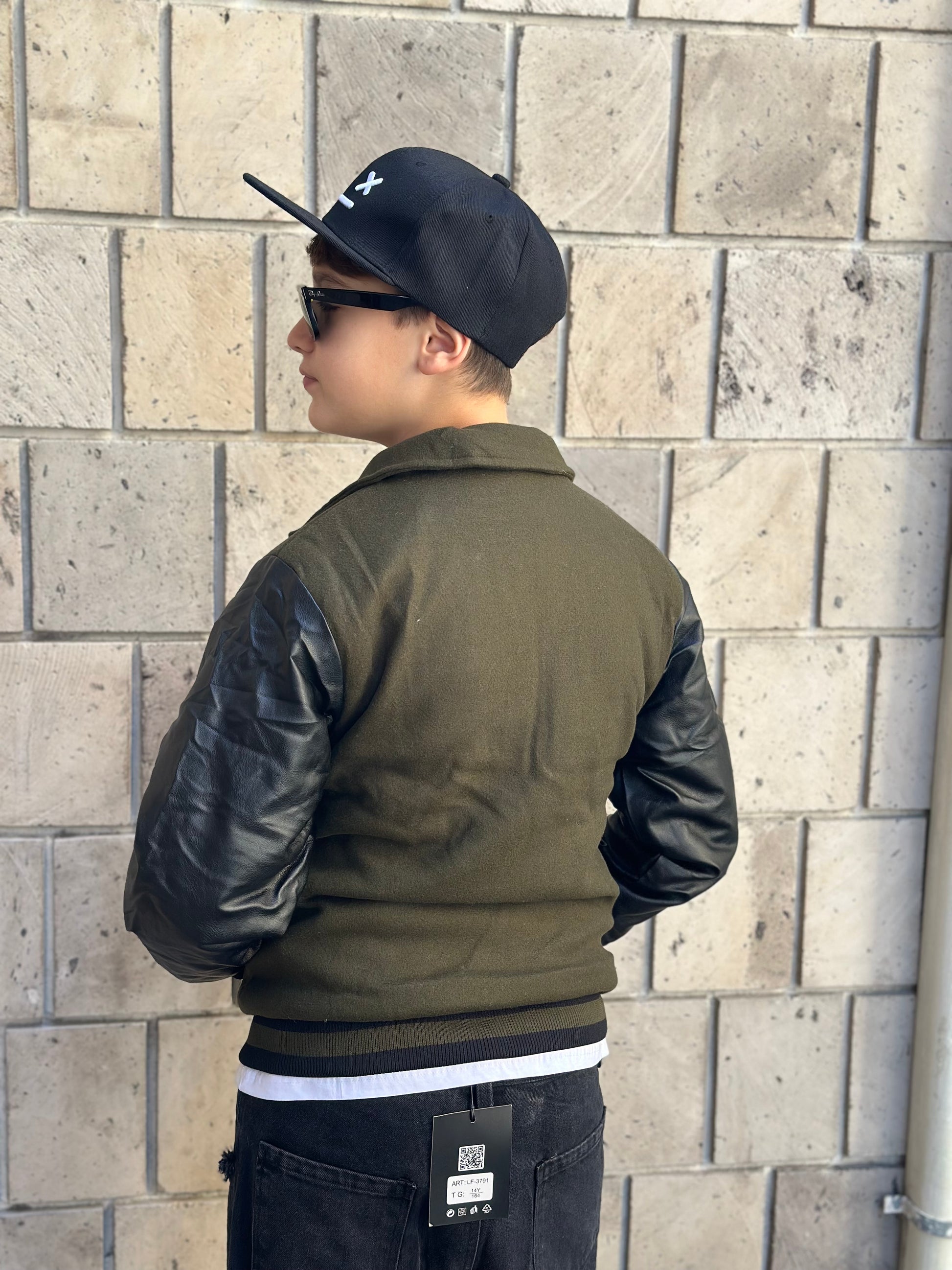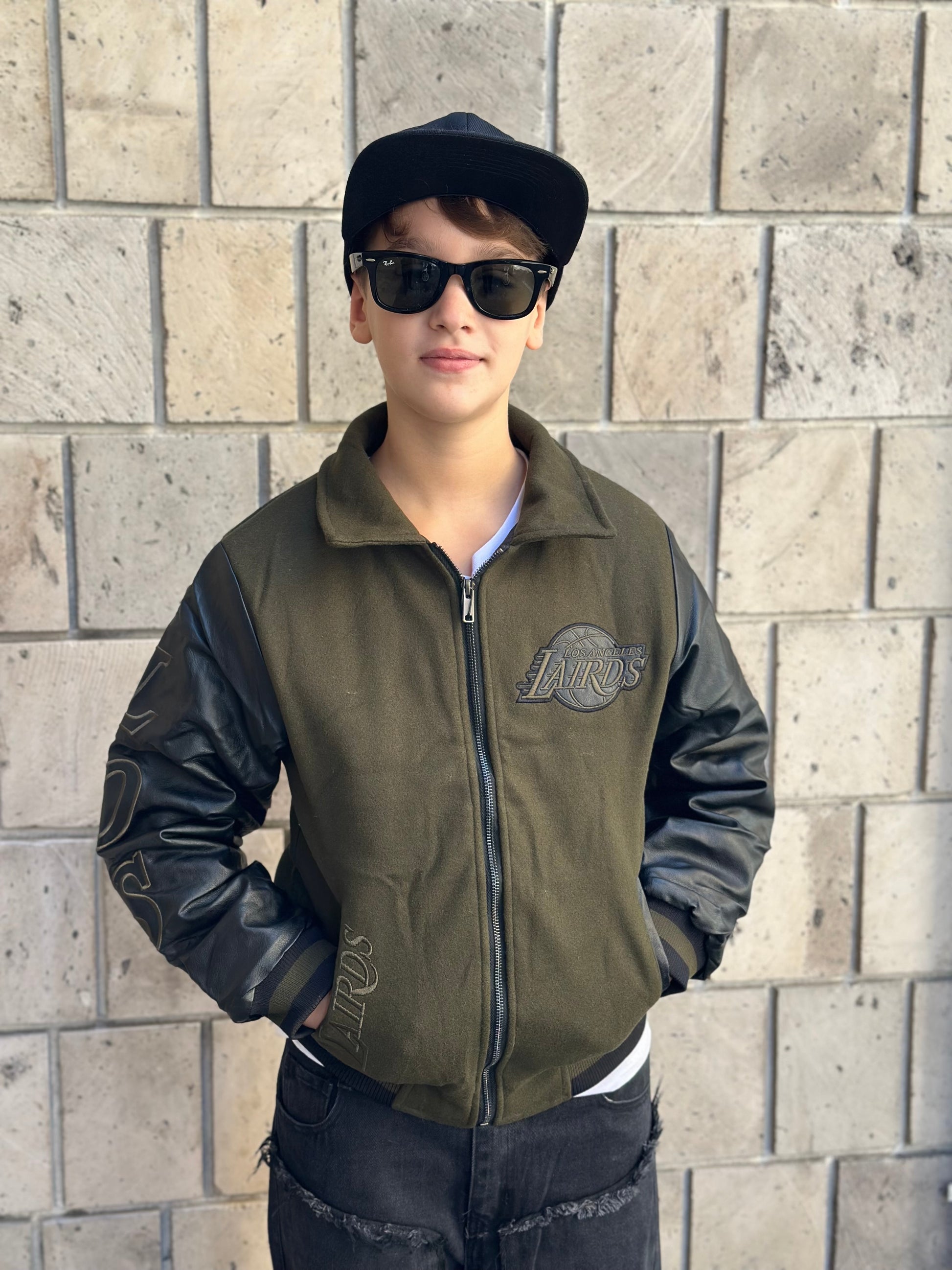 giubbotto collage mod. Lakers invernale trapuntato in camoscio e maniche in pelle con dettagli cuciti
