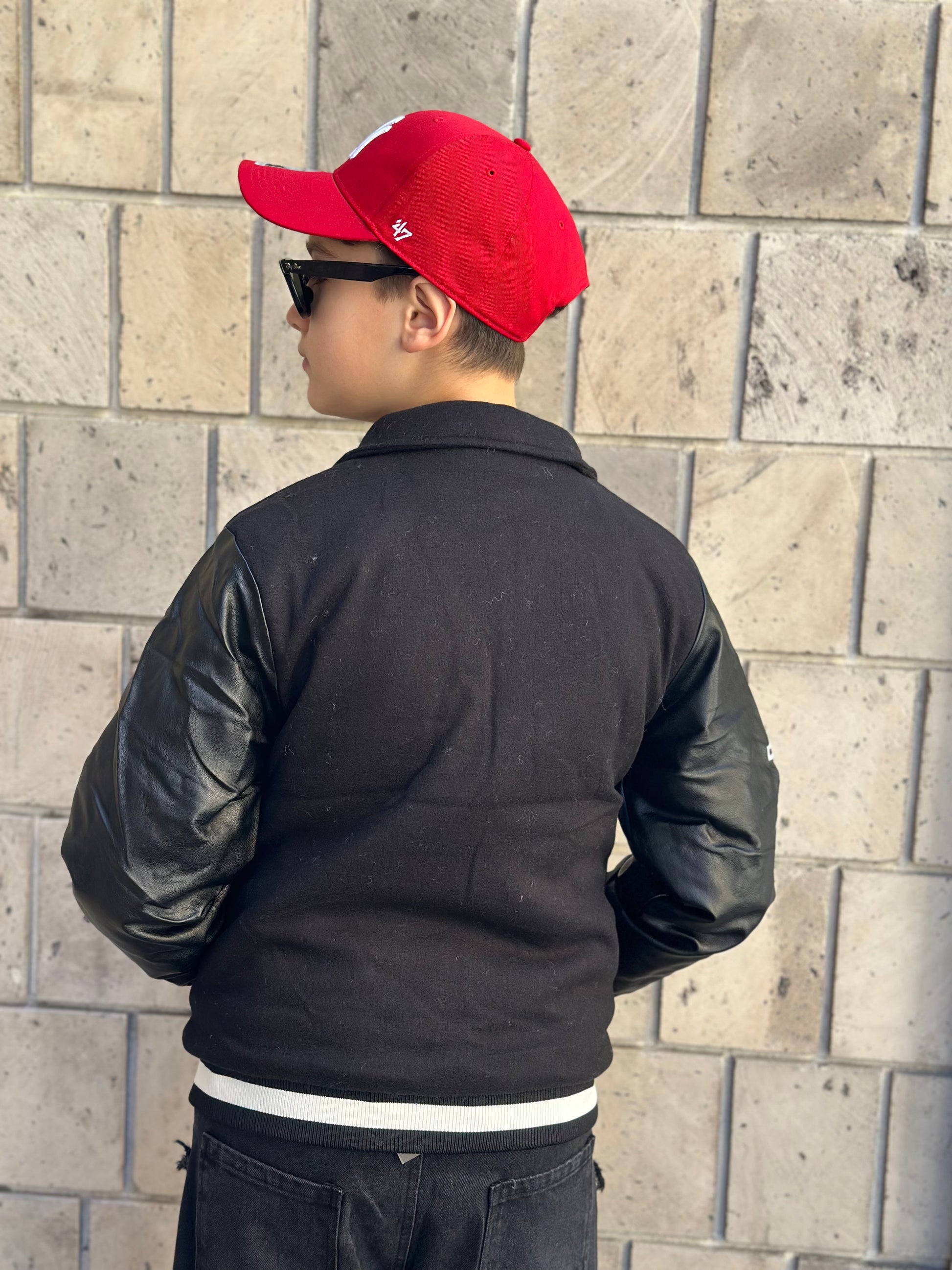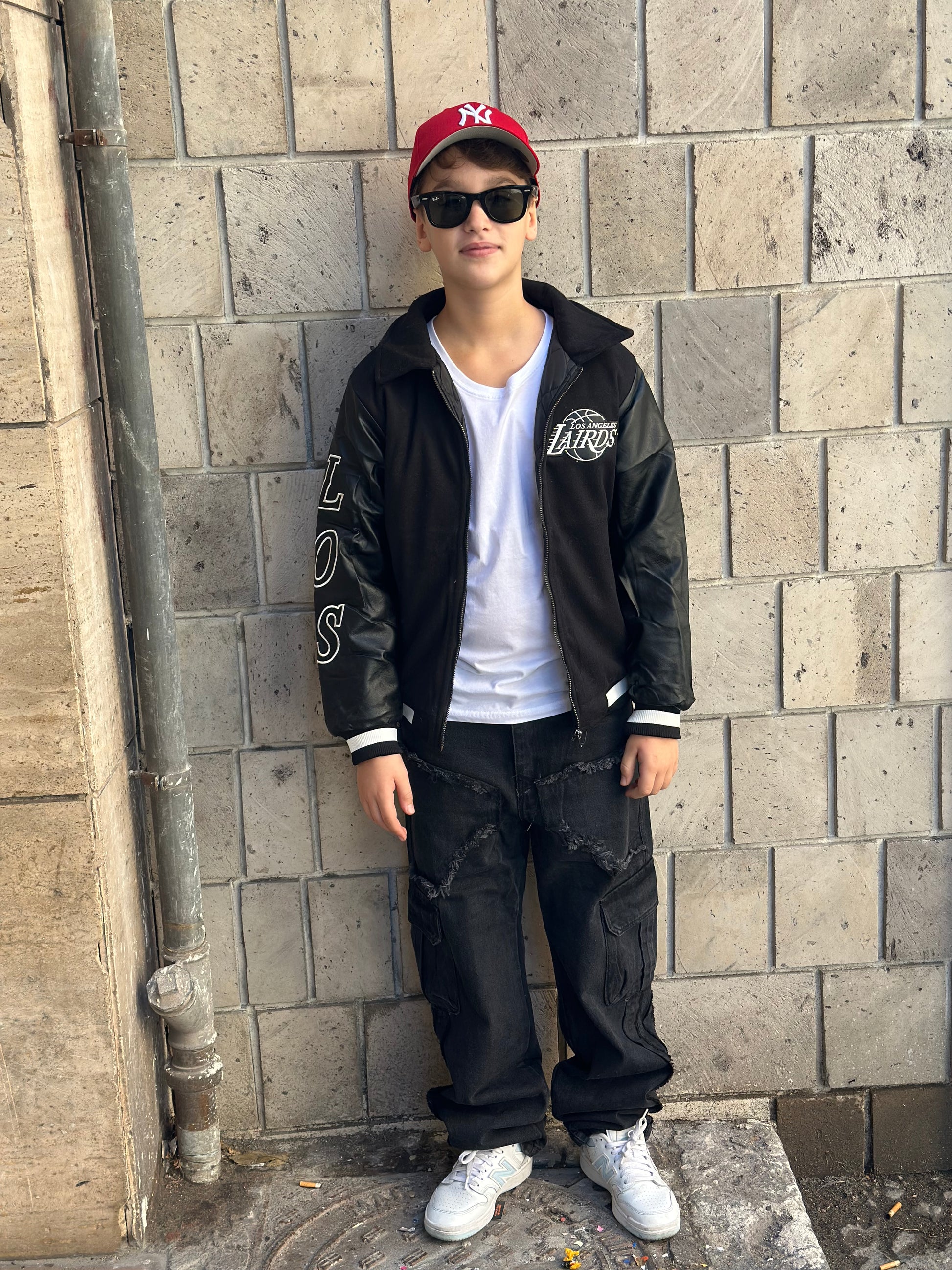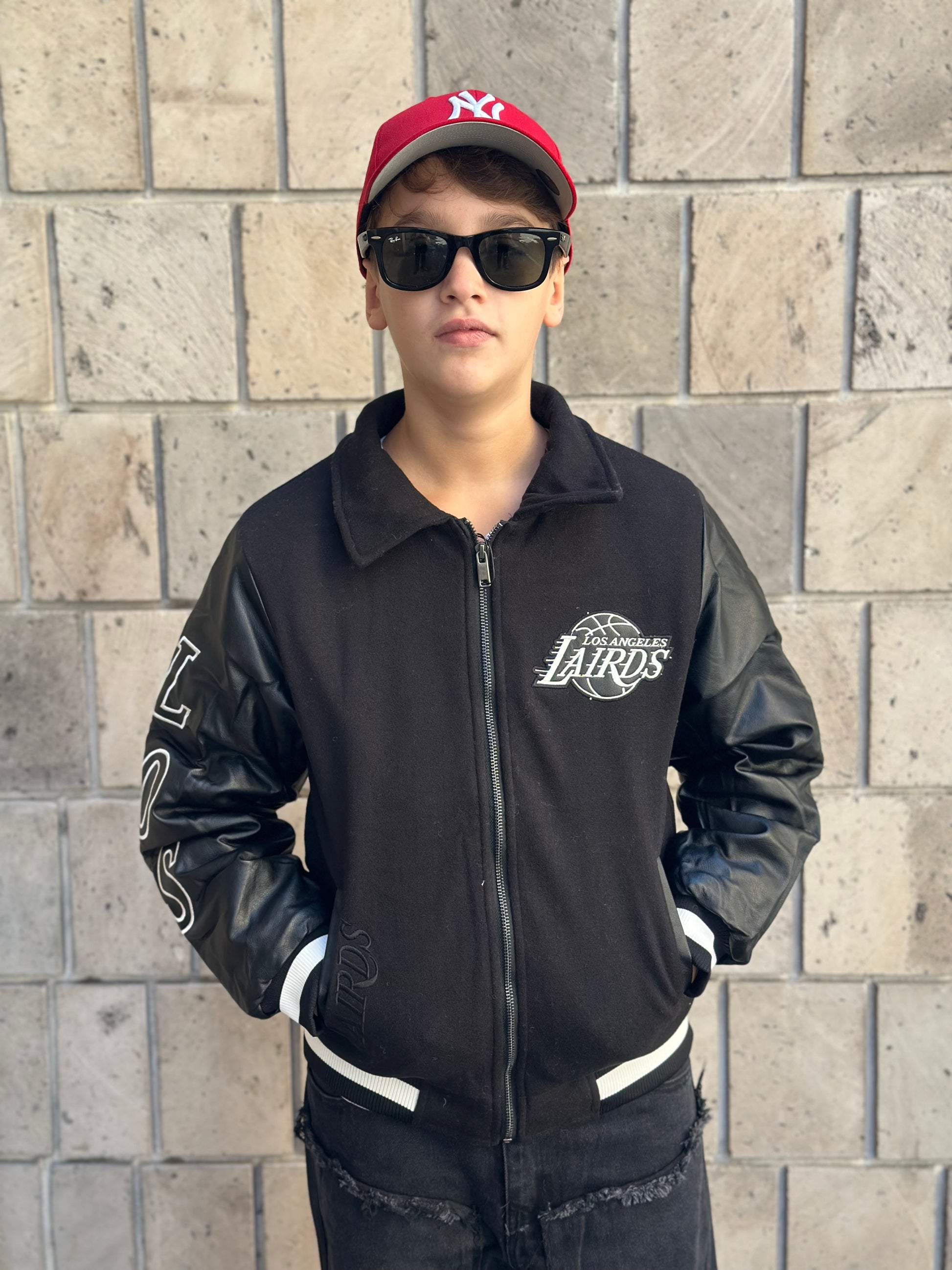 giubbotto collage mod. Lakers invernale trapuntato in camoscio e maniche in pelle con dettagli cuciti