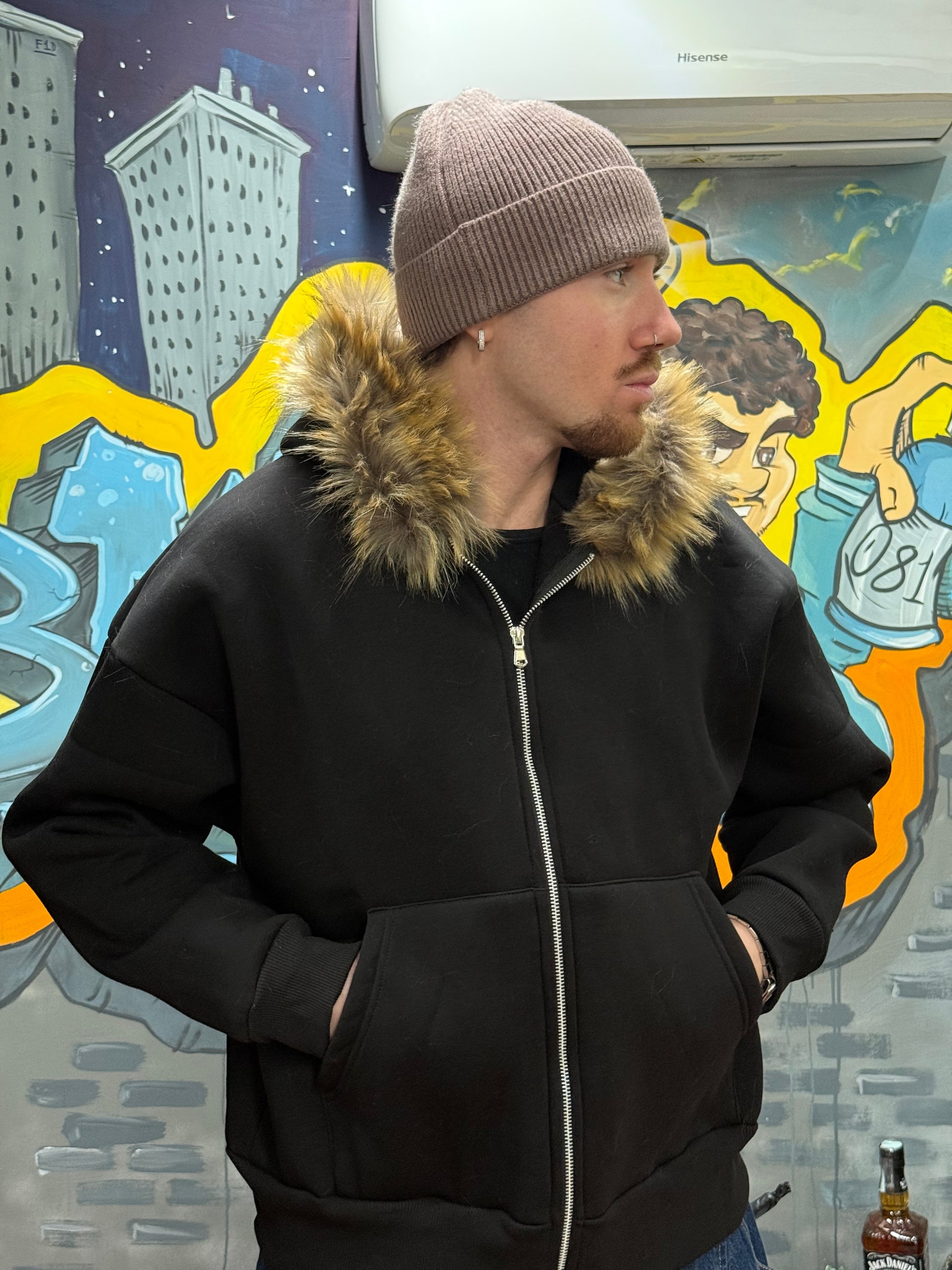 FELPA CROP FIT CON PELLICCIA