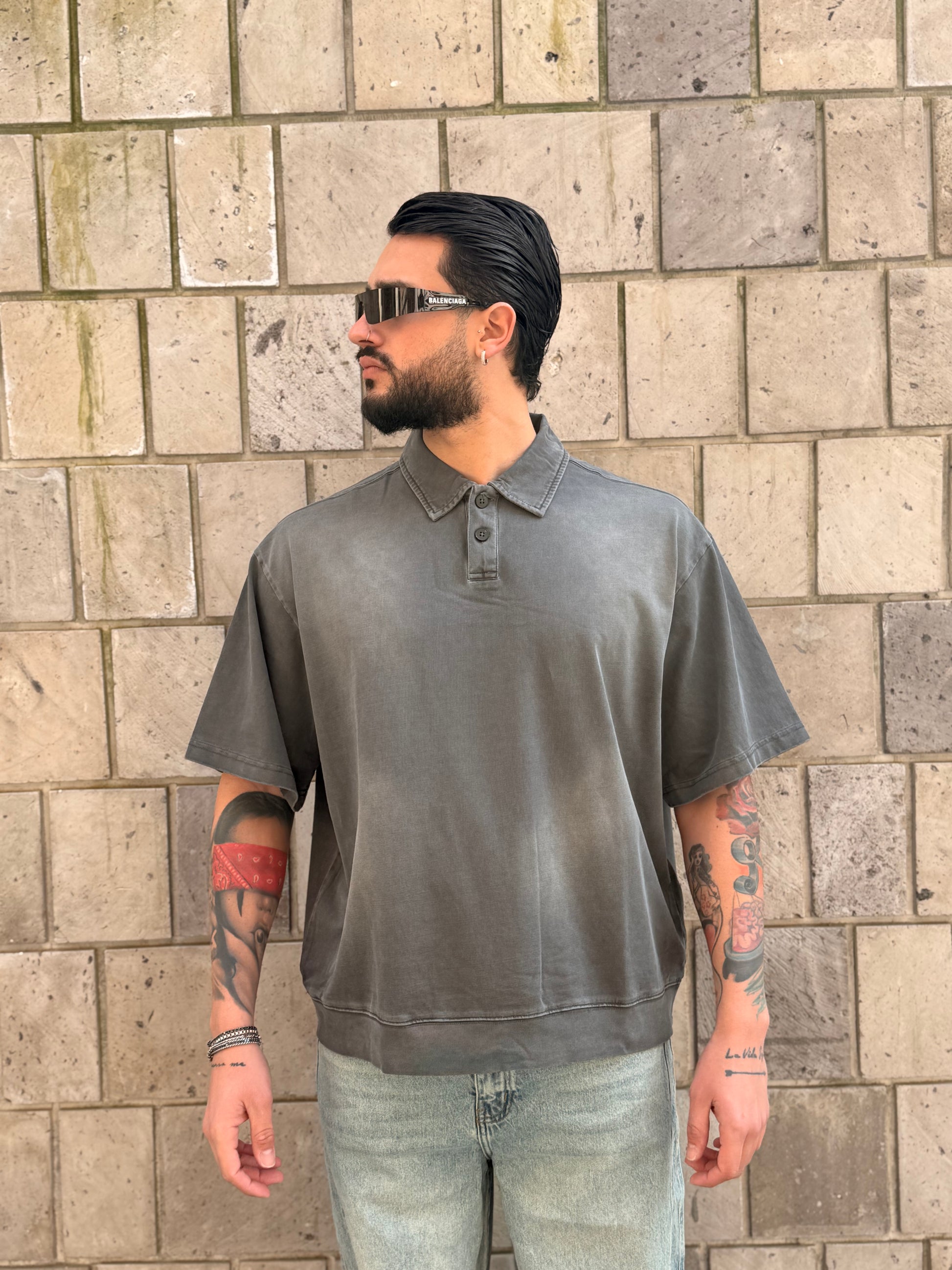 POLO CROP SLAVATA GRIGIA