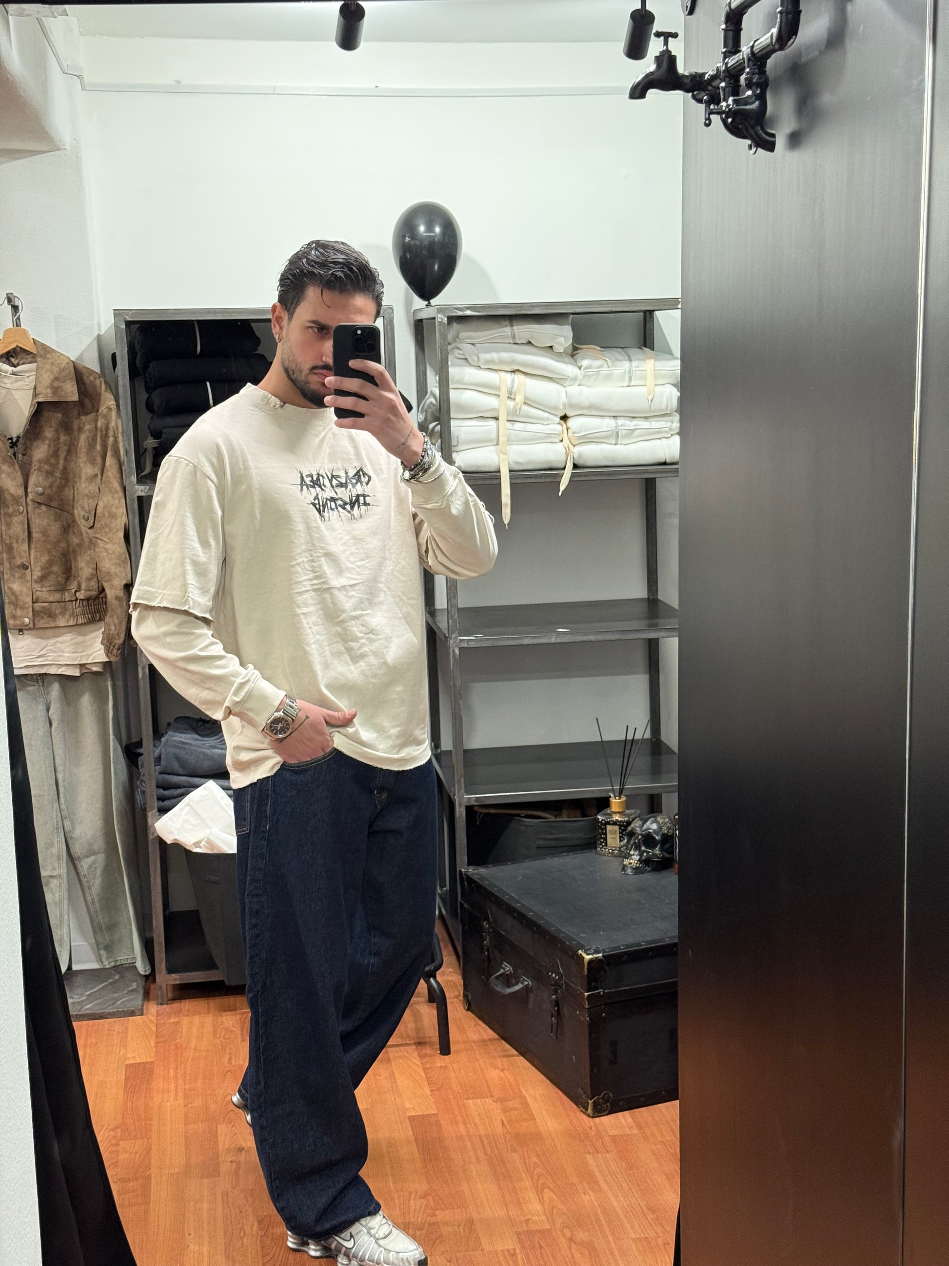 T-SHIRT DOUBLE SLEEVE BEIGE