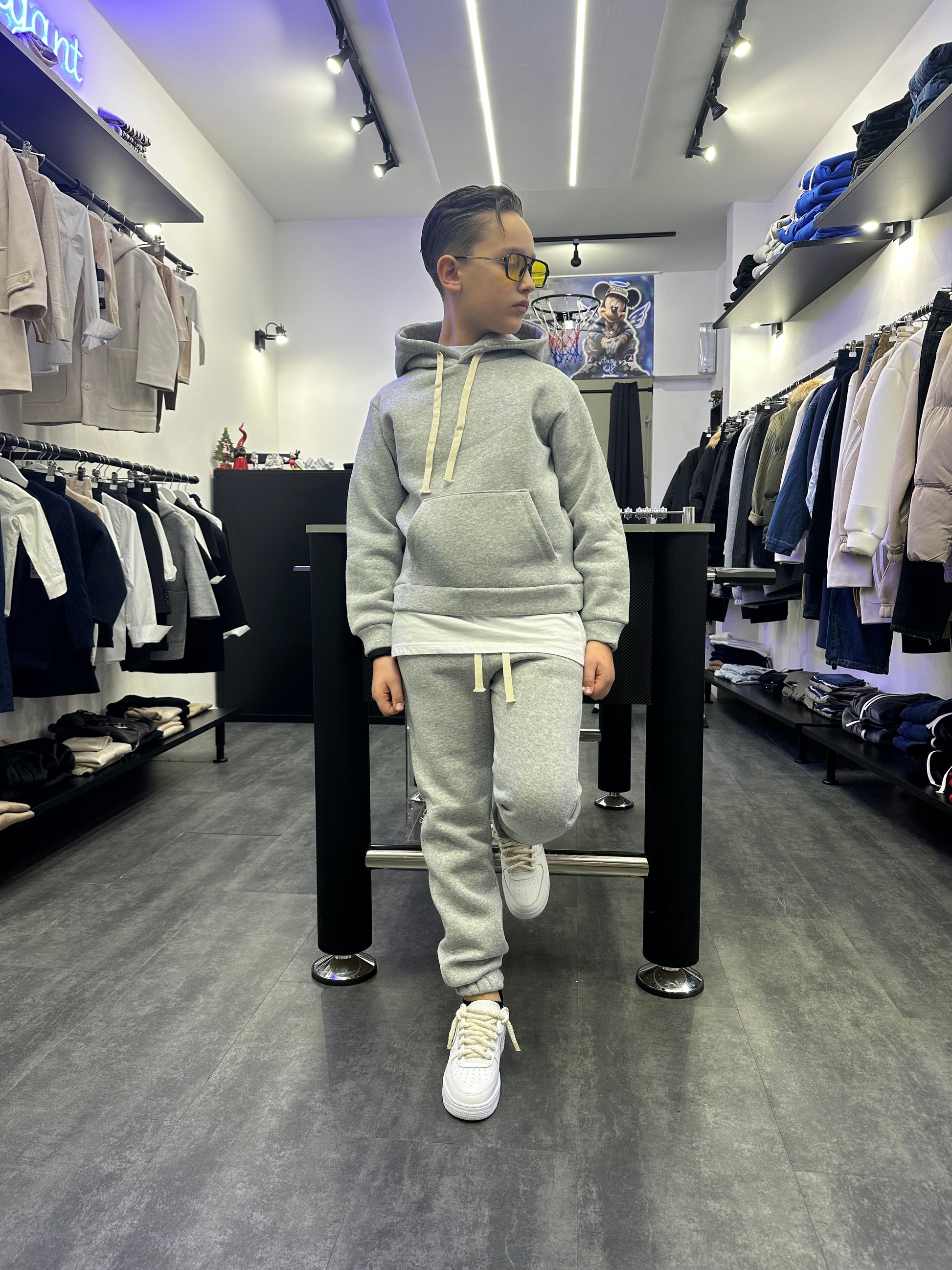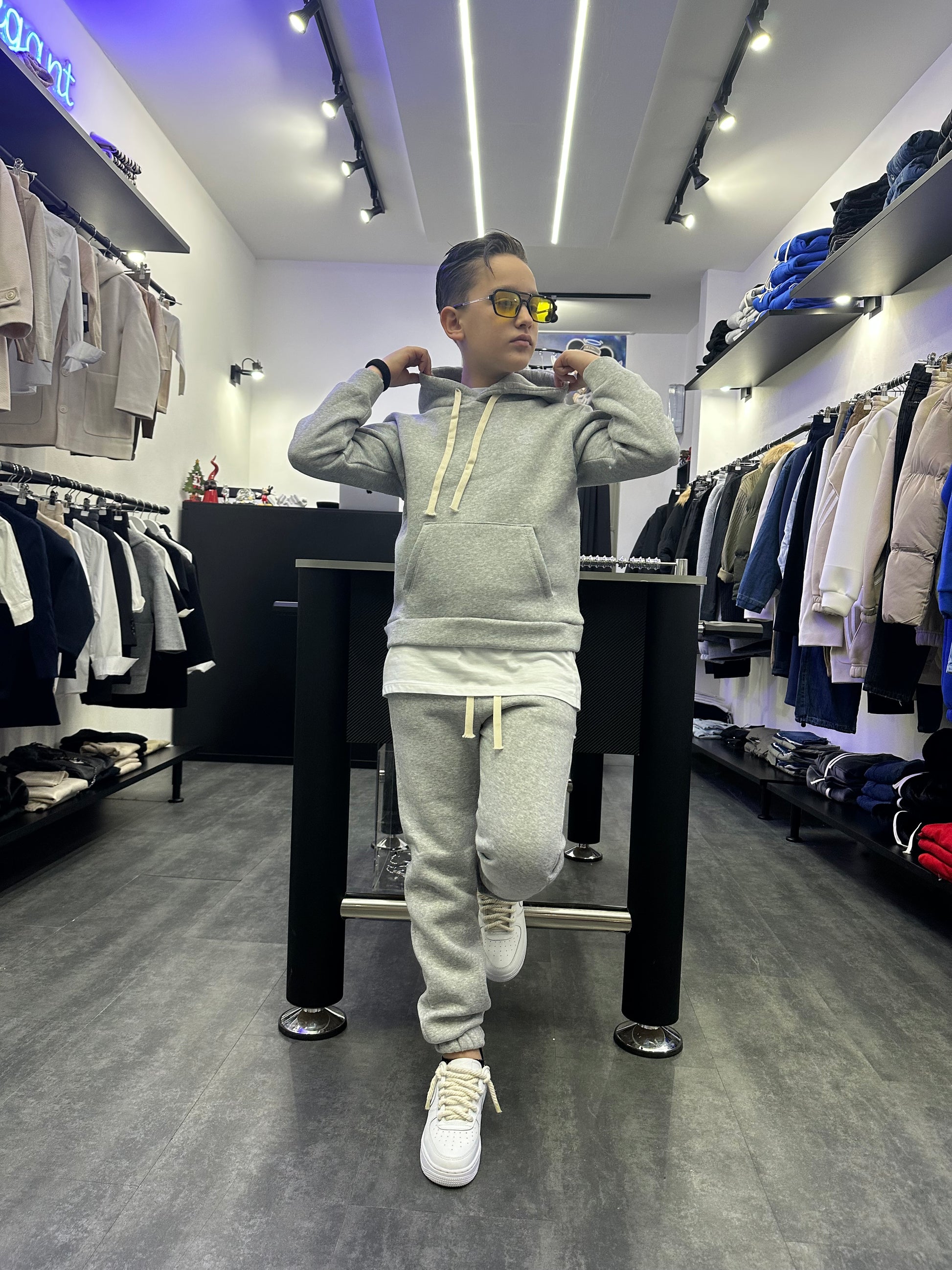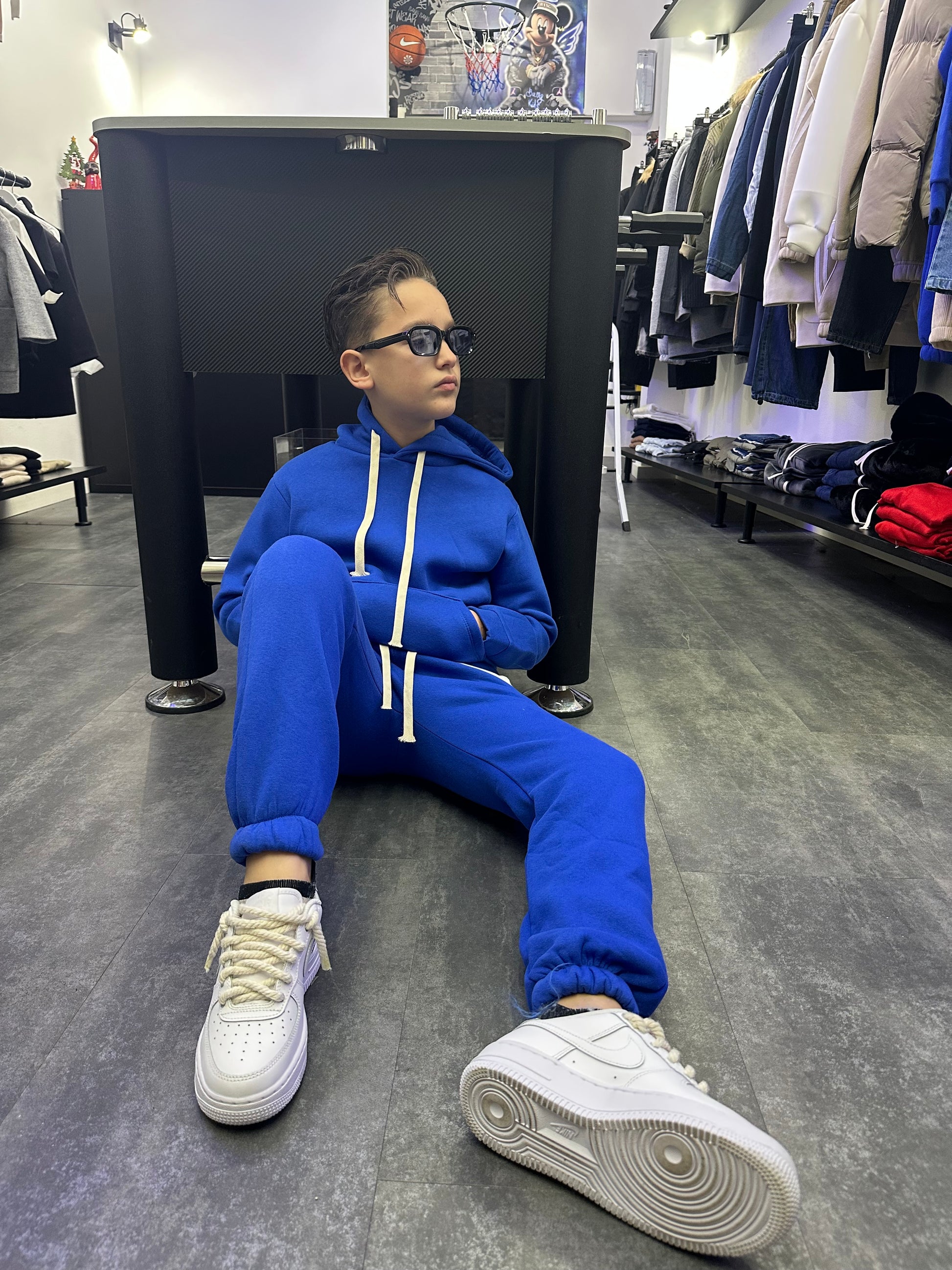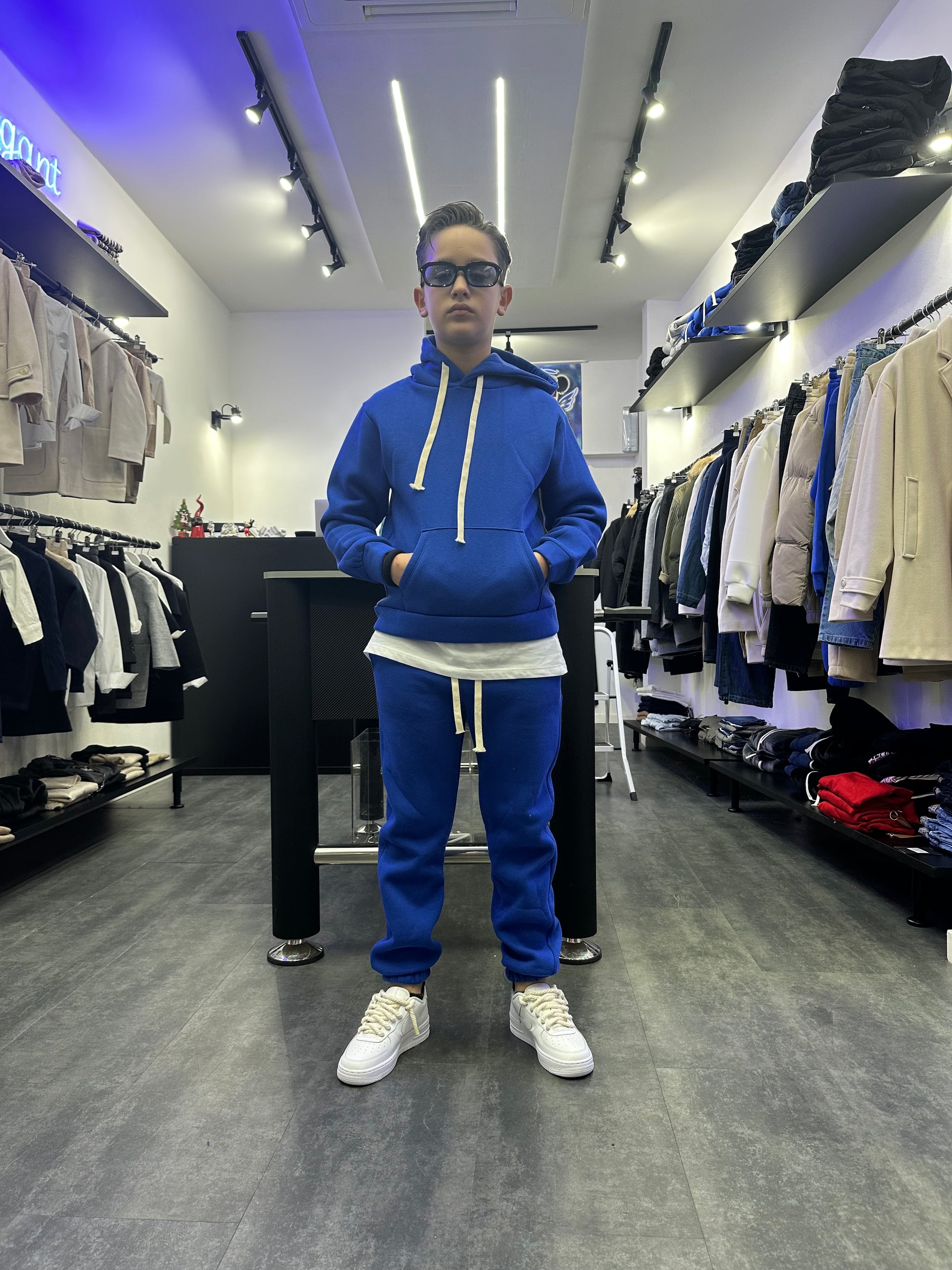 Tuta felpata Boston, calda e confortevole, ideale per la stagione fredda. Design moderno disponibile in due eleganti colorazioni: blu royal e grigio, perfetta per uno stile casual e alla moda.
